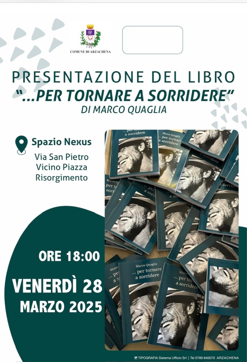 Arzachena e nello specifico la sua Amministrazione Comunale, ospiterà l’imprenditore e scrittore di Vercelli, da tempo residente nella splendida cittadina sarda, Marco Quaglia che presenterà al pubblico il libro “Per tornare a sorridere”.