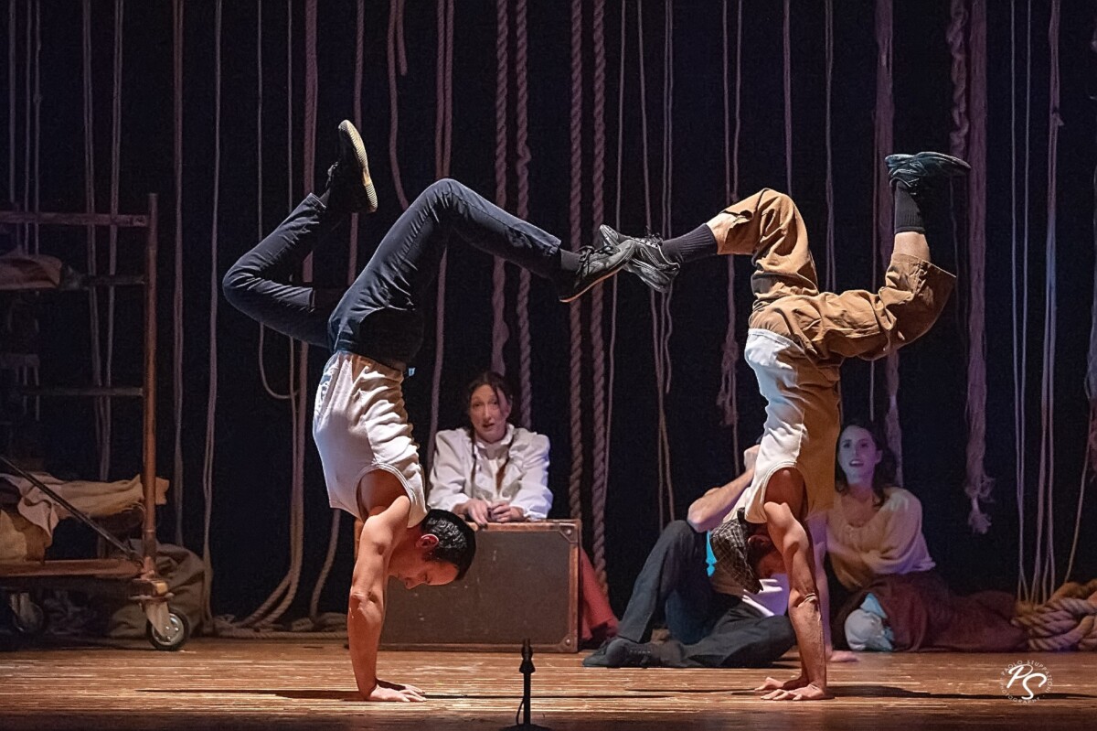 Uno spettacolo in cui il linguaggio del circo teatro, così fortemente evocativo e sanguigno, sarà accompagnato da parti di racconto orale, in un continuo viaggio tra emozioni diverse, tra piani differenti e differenti punti di vista.Trapezio, tessuto aereo, acrobatica, corda, palo cinese, verticalismo e manipolazione di oggetti saranno alcune delle tecniche circensi che daranno un respiro fisico e acrobatico di straordinario coinvolgimento. Le più celebri e popolari musiche dell’inizio del Novecento, canticchiate nei porti o le grandi ballate con violino, accompagneranno i movimenti coreografici in aria e a terra, con un continuo contrappunto tra emozioni diverse e ritmi diversi.